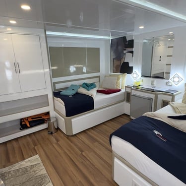 Cabins : 4 suit / 11 double / 1 Dive Guide Cabin Air-Conditioned ( 28 Pax )