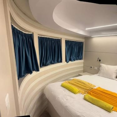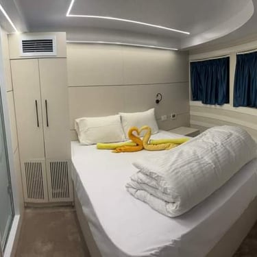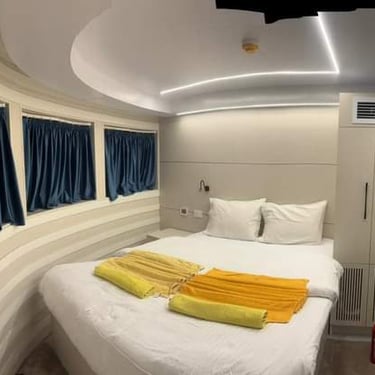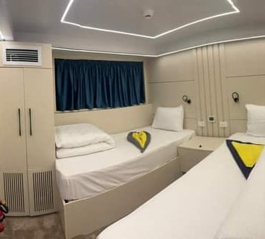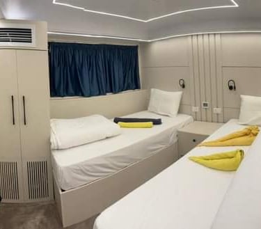 Cabins: 9x twin and 3x double cabins with A/C and en-suite bathrooms. 1 cabin for dive guides