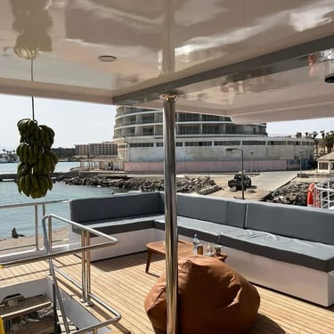 Salon: spacious air-con dining room and salon with TV, and sound system